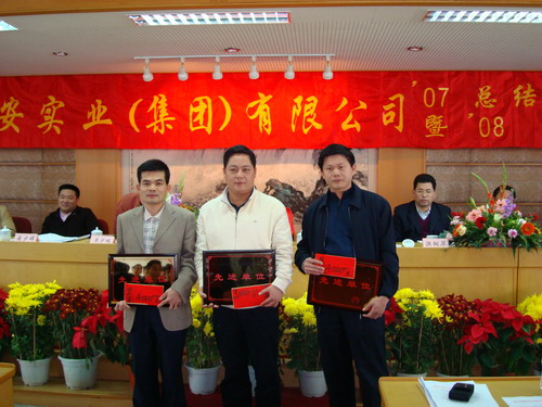 会议由李忠斌副总经理主持,黄少华总经理作集团公司2007年工作总结和2008年工作计划,刘伟光副总经理宣读《关于表彰二零零七年度先进单位和先进个人的决定》(汕建实业[2008]8号),现场还进行了颁奖,先进单位代表发言,最后,由黄世豪董事长发表重要讲话,提出2008年为我司的“效益年”,经济效益、社会效益、管理效益、个人效益各方面要齐抓共管,各单位要重点领会“效益年”的精神,认真贯彻组织落实。会议在热烈、欢庆、祥和的气氛中进行。当晚,集团公司在皇城大酒楼隆重举行2007庆功暨2008开门红庆祝晚宴。(☆ 温伟娇 文 / 蔡澄阳 图)