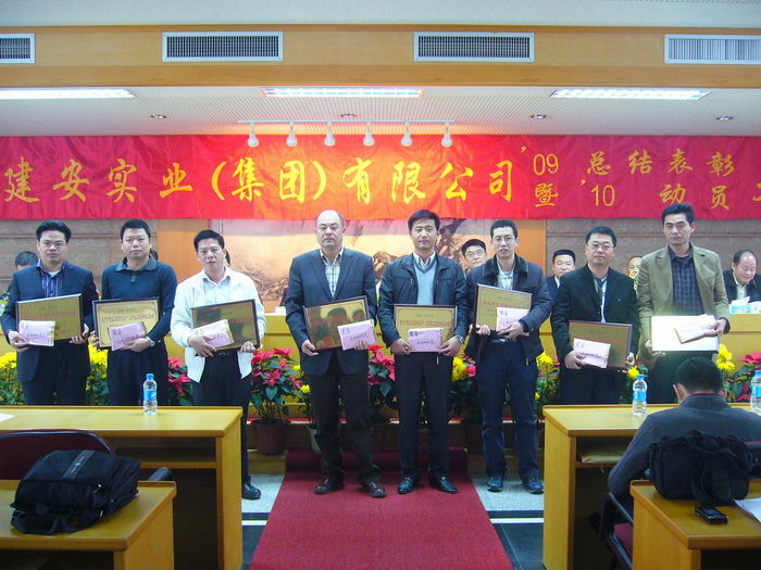 2月21日下午,汕头市建安实业(集团)有限公司在集团公司六楼多功能厅隆重召开2009年总结表彰暨2010年动员大会,集团公司领导、全体员工,各分公司、公司、工程处、项目部部分人员,我司幼儿园及文化活动中心全体人员近180人参加了会议。